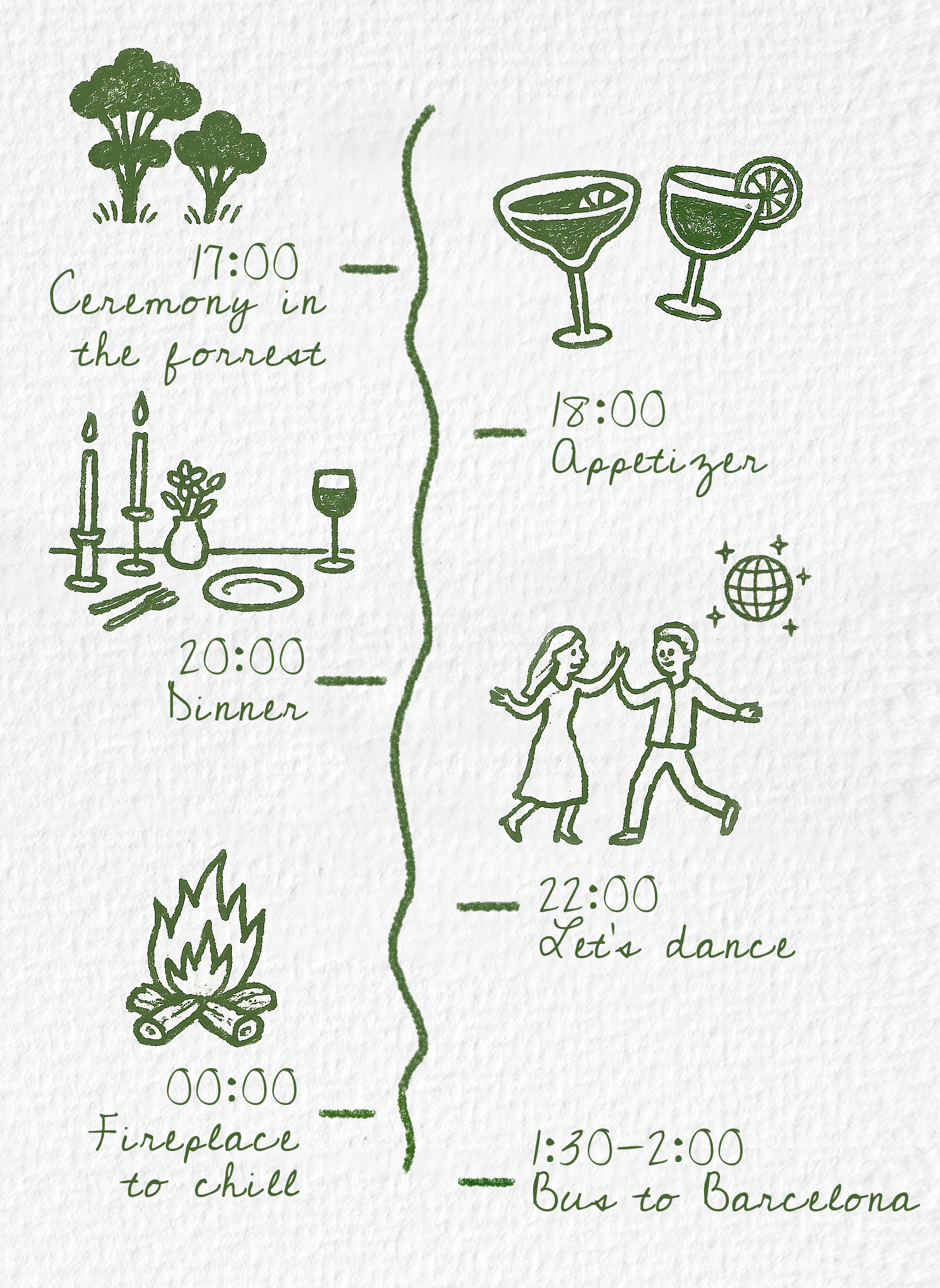 Price for the Wedding Night 195€ for 2 guests — breakfast included. Extra beds per room: - 27€ for babies (cradle) - 37€ for children 3–12 - 57€ for guests over 13.